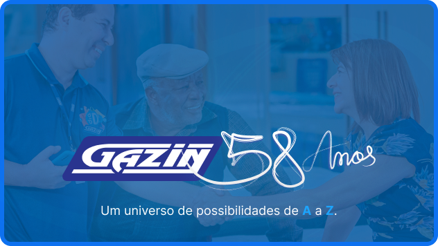 O Grupo Gazin tem mais de 58 anos de trajetória com 13 centros de distribuição, mais de 300 lojas de Varejo, Atacado, Consórcio, Gazin Viagens, E-commerce e tantos outros braços responsáveis por escrever essa história de sucesso.